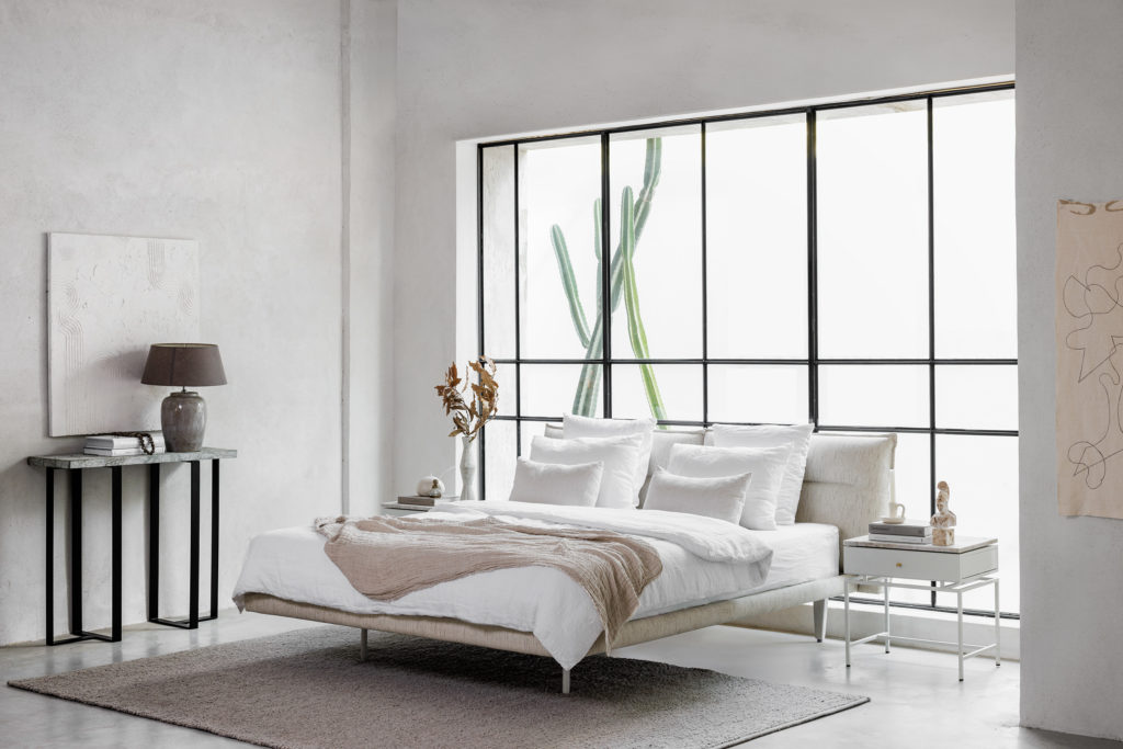 המיטה מרחפת ומעניקה לחלל חדר השינה תחושת מרחב וריחוף.