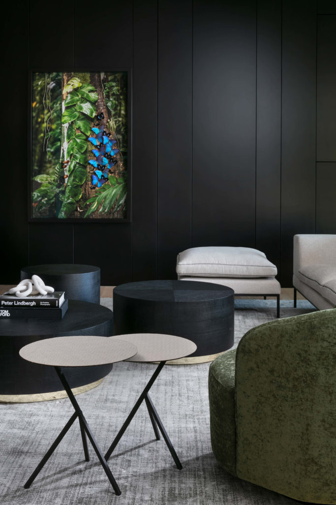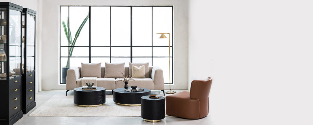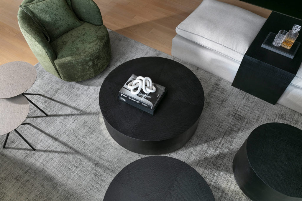 שולחנות עגולים משתלבים במספר קוטרים וגבהים שונים. עשוי עץ אלון מסורק צבוע פחם שחור. ניתן להזמין בהתאמה אישית לפי גודל וצבע נבחר.